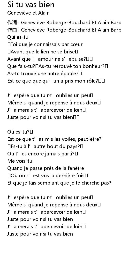 | 作词 : Geneviève Roberge-Bouchard Et Alain Barbeau | |