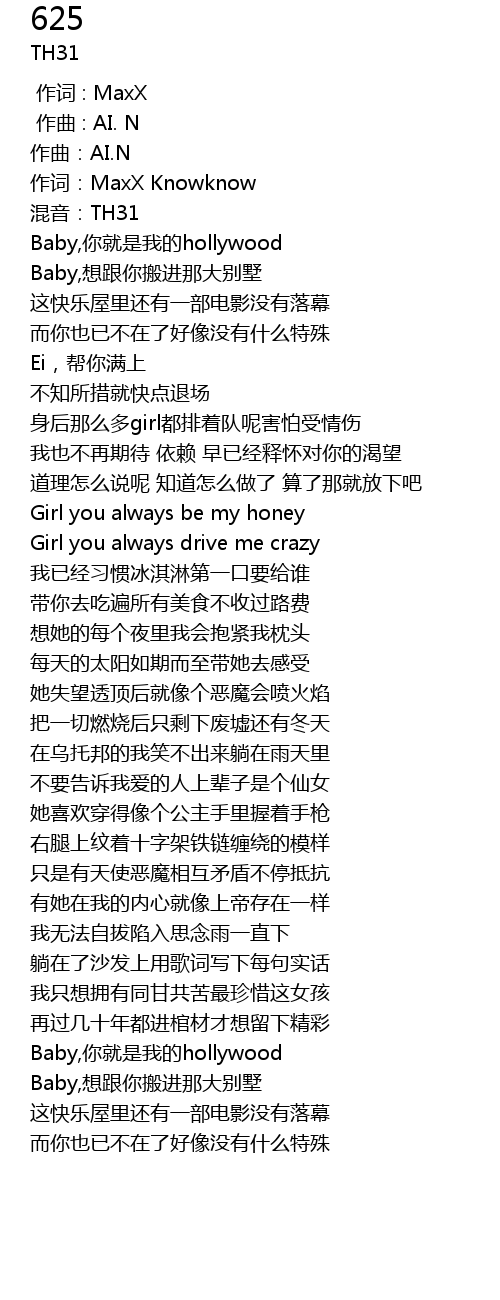 | [00:26.189] | Baby, ni jiu shi wo de hollywood |