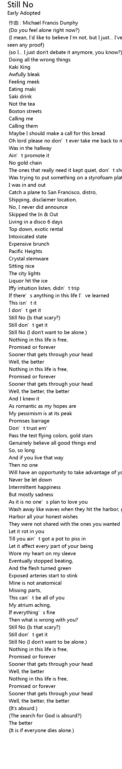 | [00:00.000] | 作曲 : Michael Francis Dunphy |