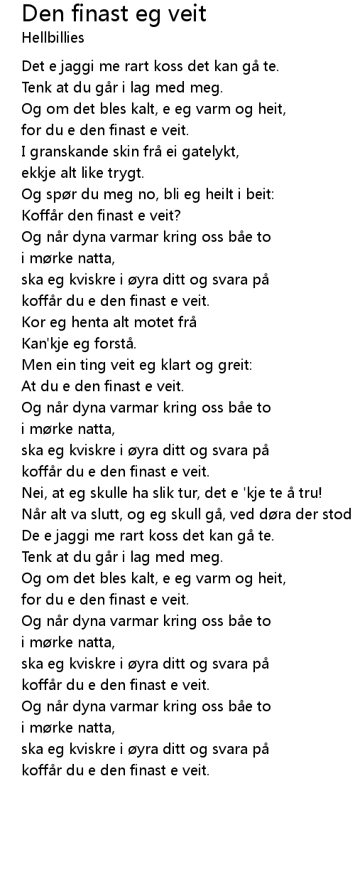| [00:31.97] | for du e den finast e veit. |