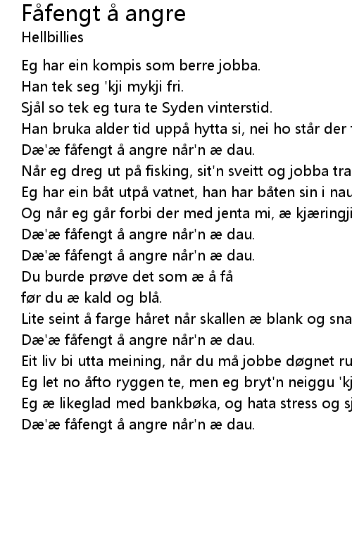 | Dæ'æ fåfengt å angre når'n æ dau. |