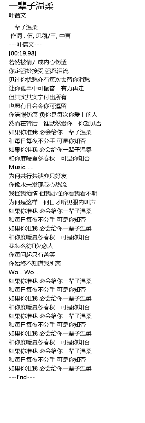 | [04:06.89] | 如果你准我 必会给你一辈子温柔 |