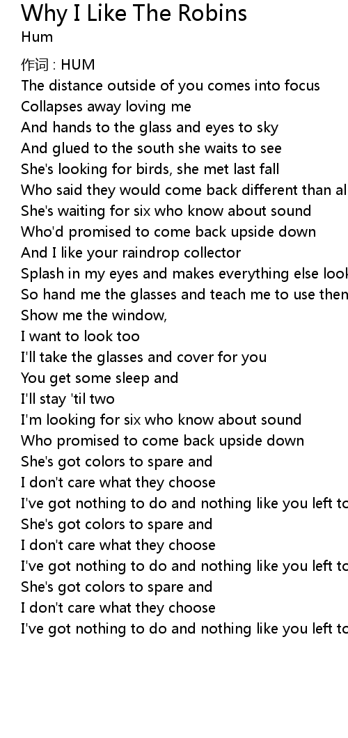 | Song | Why I Like The Robins |