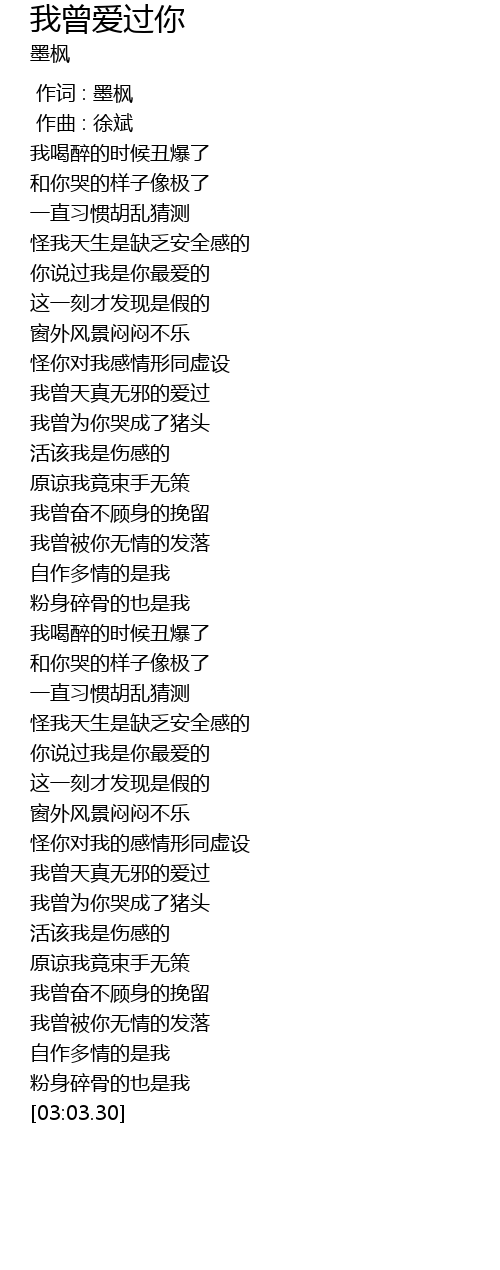 | [00:42.22] | 我曾天真无邪的爱过 |