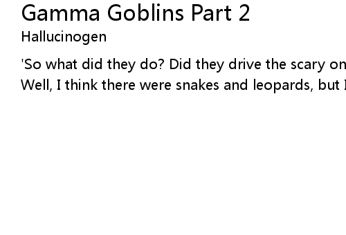 | 'So what did they do? Did they drive the scary ones away from you at night? - Well, I think there were snakes and leopards, but I haven't quite come to that.' |