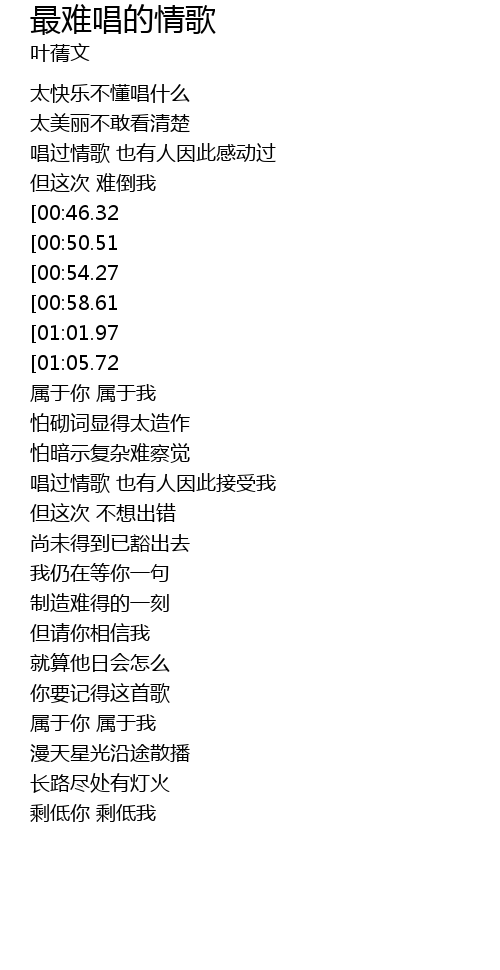 | [02:21.83][00:50.51] | 我仍害怕有一句 |