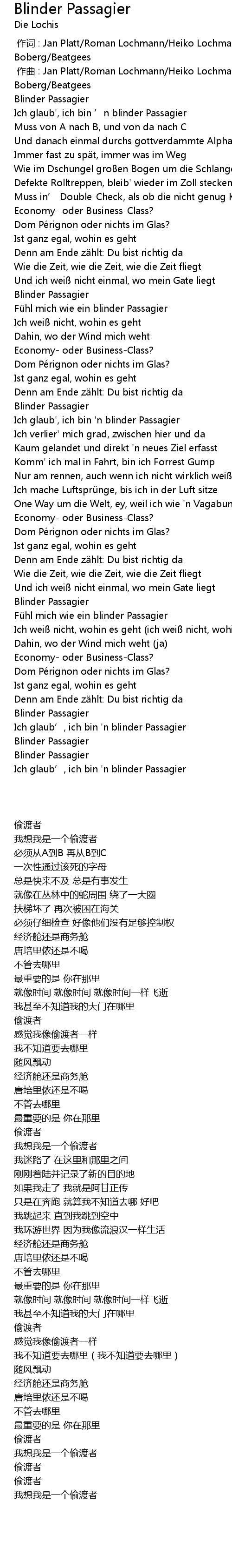 | [02:32.109] | Ich glaub', ich bin ' n blinder Passagier |