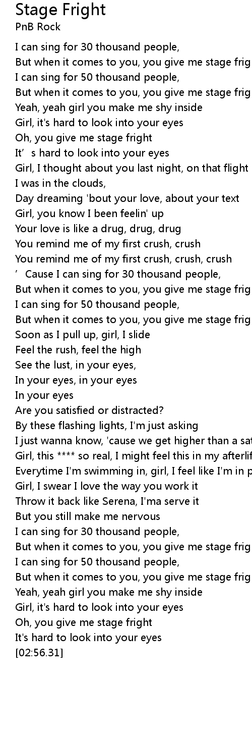 | [02:21.65] | But when it comes to you, you give me stage fright |
