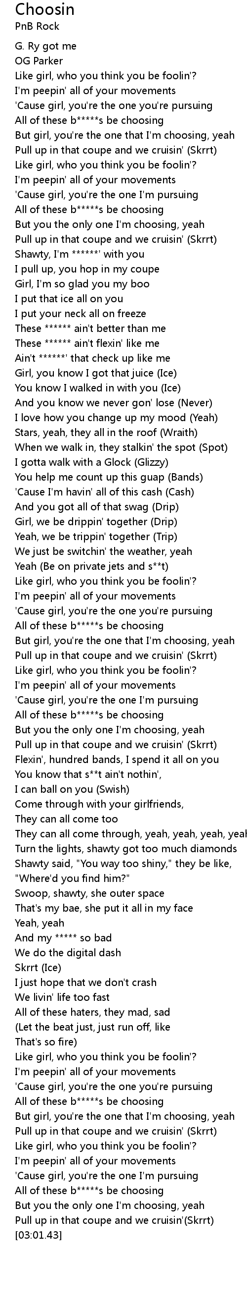 All of these b*****s be choosing |