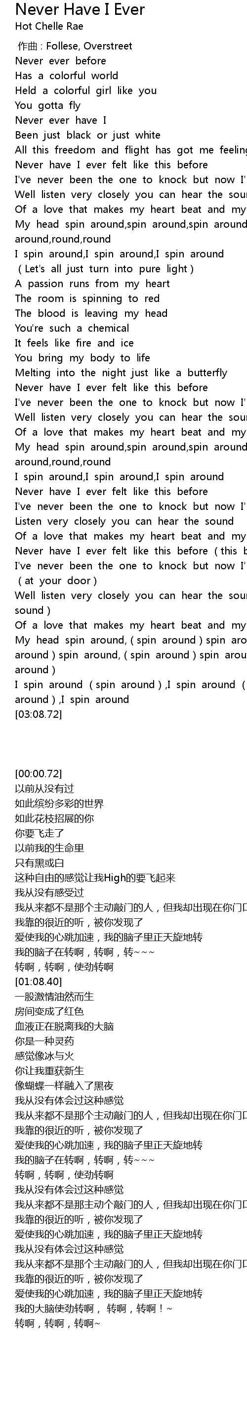 | [01:45.32] | My head spin around,spin around,spin around,spin around,round,round |