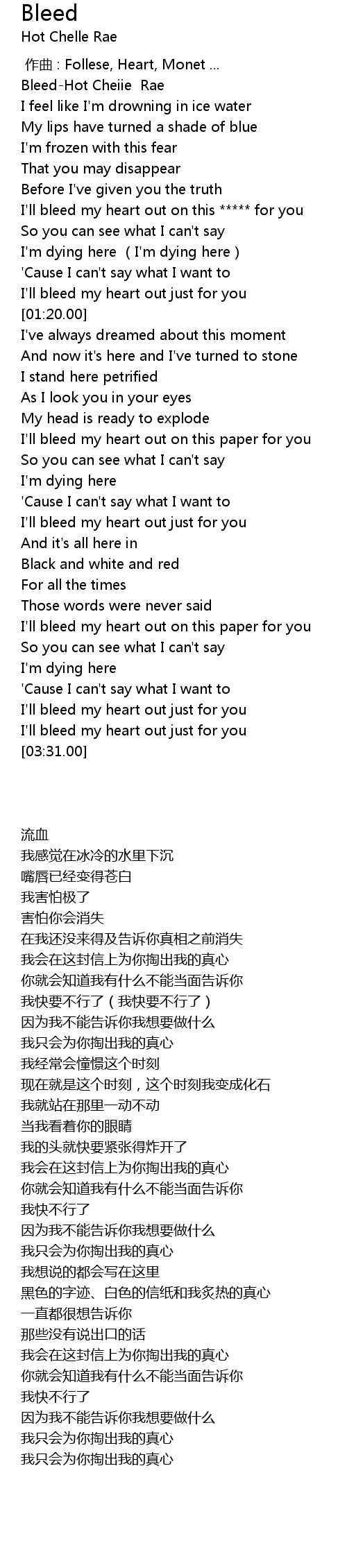 | [00:00.00] | Bleed-Hot Cheiie Rae |