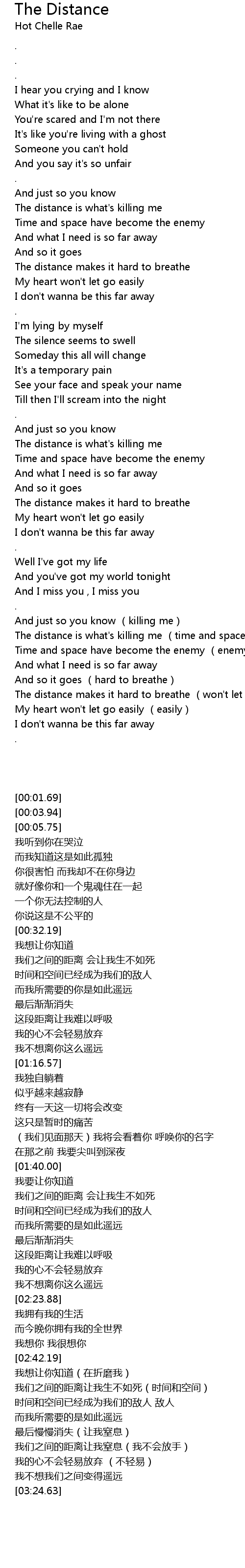 | [02:48.26] | The distance is what's killing me (time and space) |