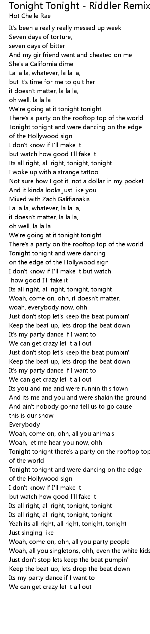 Its all right, all right, tonight, tonight |
