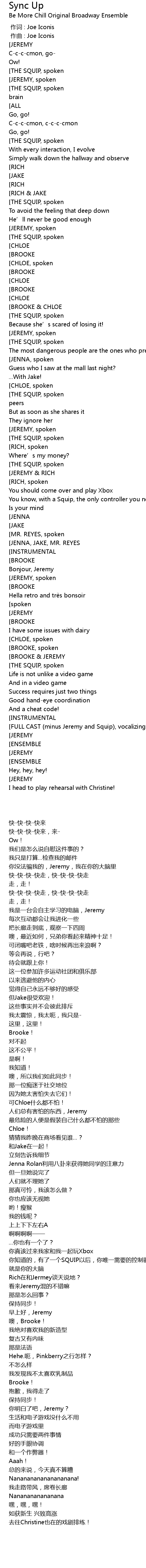 | [01:53.019][JENNA, JAKE, MR. REYES] | Get synced up! |