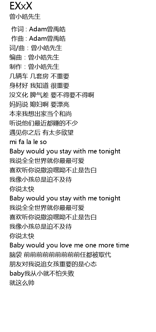 | [00:00.000] | 作词 : Adam曾禹皓 |