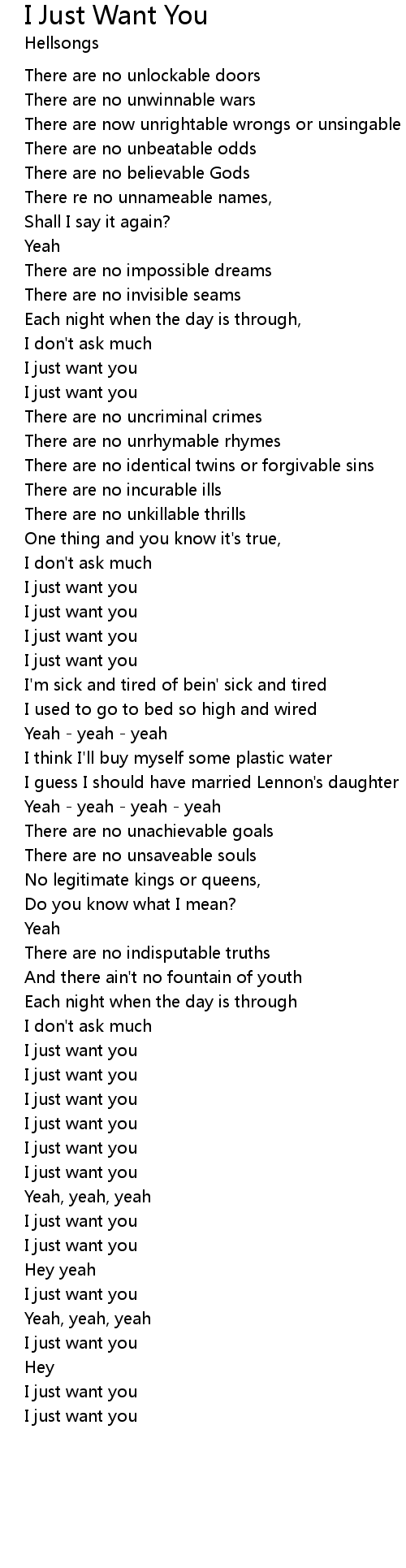 I Just Want You Lyrics