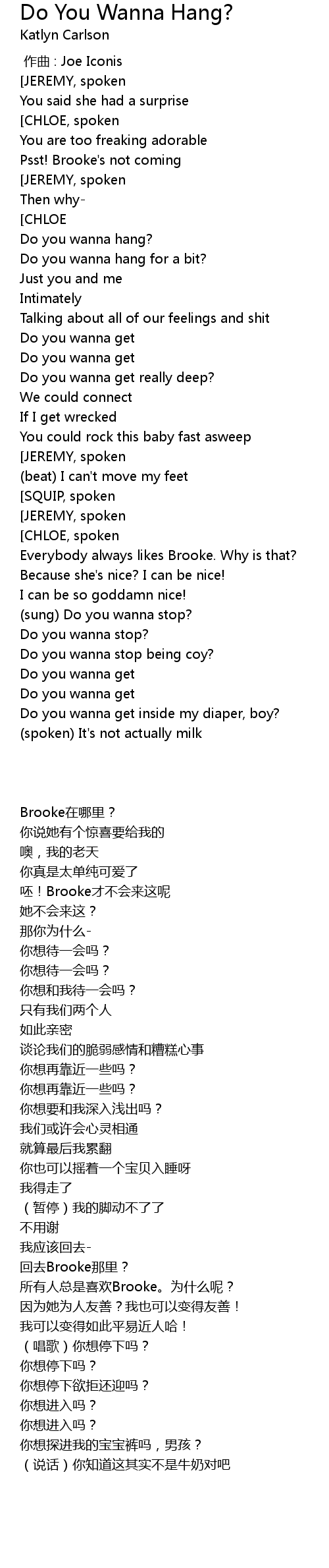 | [00:16.131][CHLOE] | Do you wanna hang? |