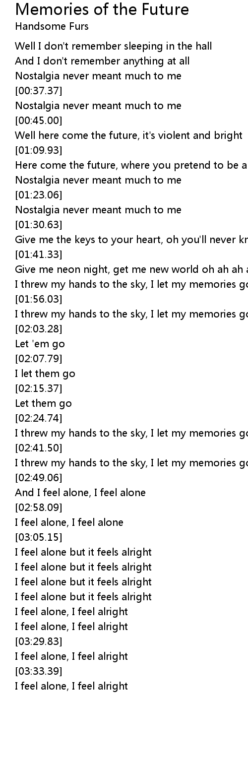 I feel alone, I feel alright |