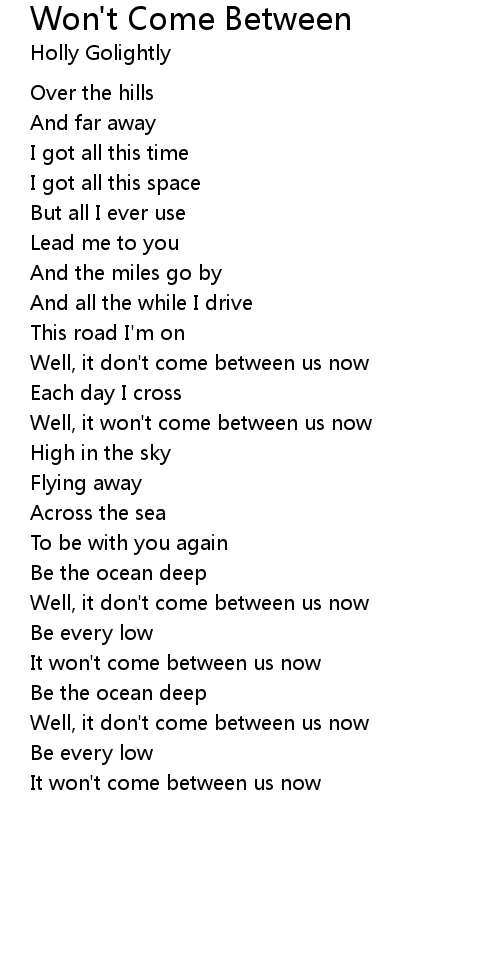 Well, it won't come between us now |