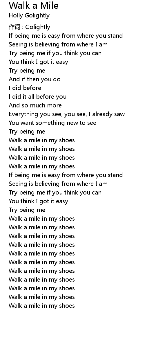 | Walk a mile in my shoes |