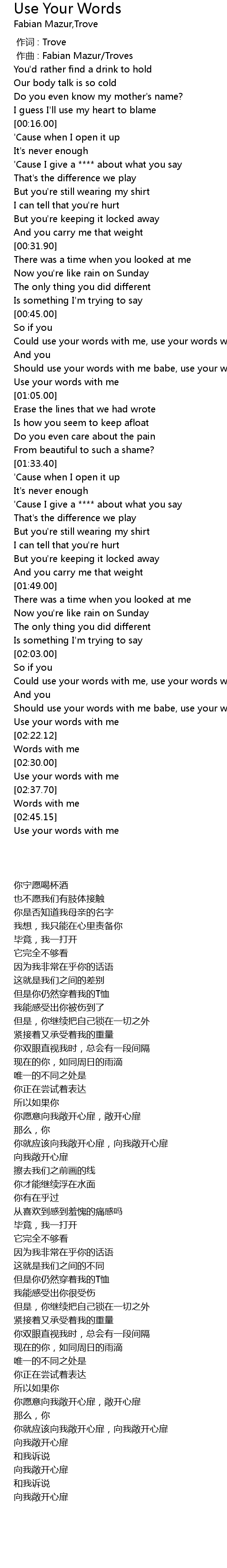 | [02:20.06] | Use your words with me |