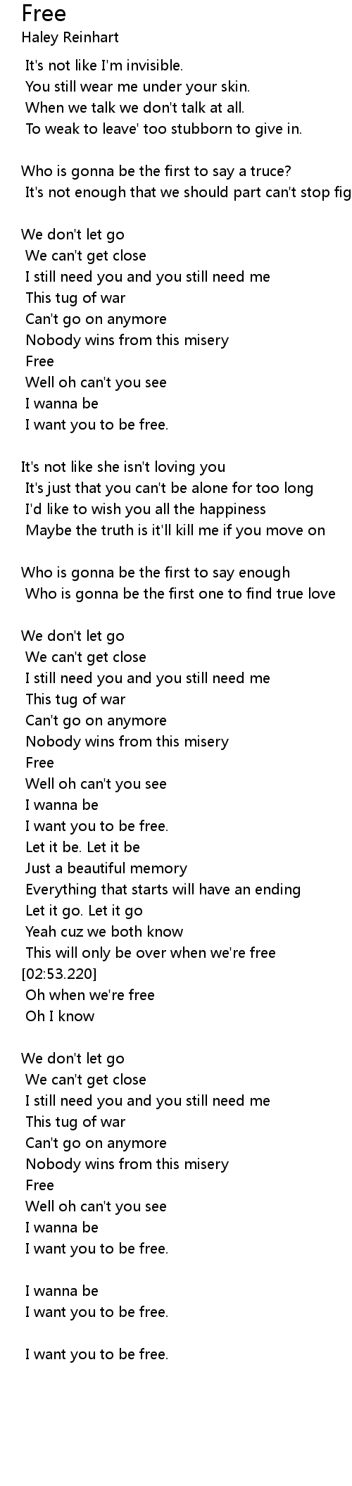 | [02:26.50] | I want you to be free. |