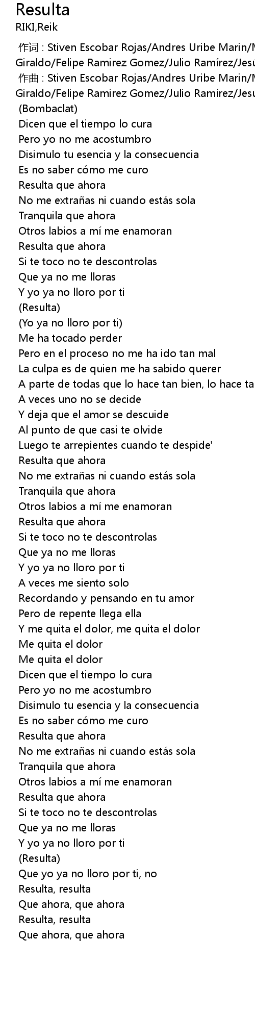 | [00:00.000] | 作词 : Stiven Escobar Rojas/Andres Uribe Marin/Mateo Tejada Giraldo/Felipe Ramirez Gomez/Julio Ramírez/Jesús Navarro/Bibi Marín |