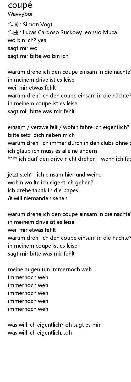 | warum dreh´ ich den coupe einsam in die nächte? | |