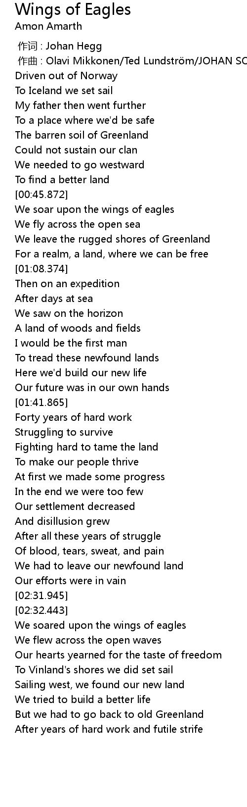 | [00:48.865] | We soar upon the wings of eagles |