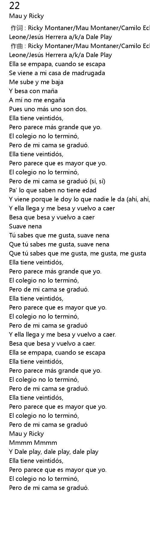 | [00:26.54] | Ella tiene veintidós, |