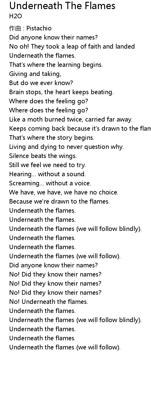 | Underneath the flames (we will follow blindly). | |