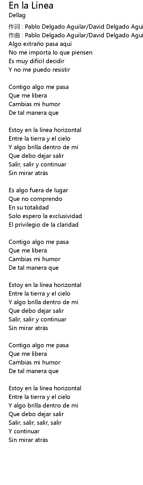| 作词 : Pablo Delgado Aguilar/David Delgado Aguilar/Gabriela Delgado Aguilar | |