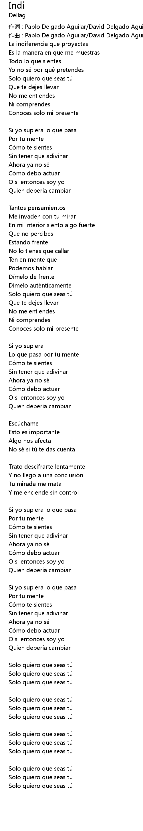 | 作词 : Pablo Delgado Aguilar/David Delgado Aguilar/Gabriela Delgado Aguilar | |