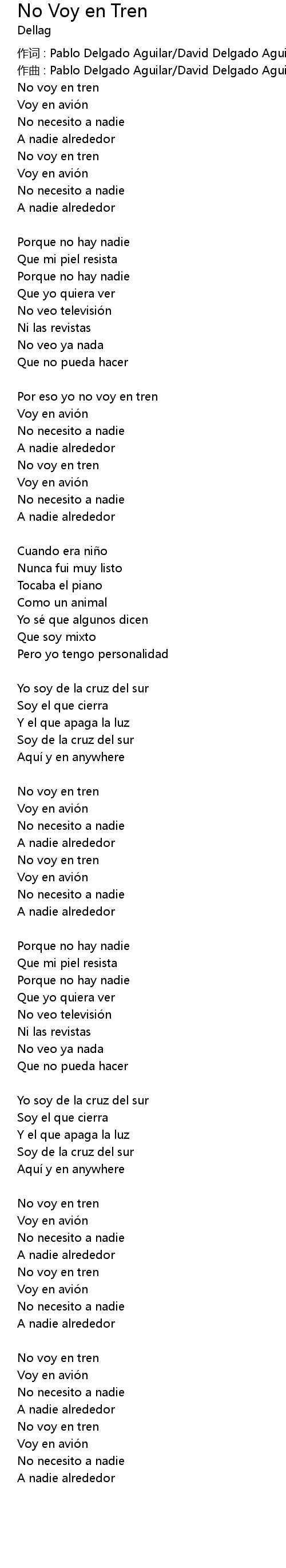 | 作词 : Pablo Delgado Aguilar/David Delgado Aguilar/Gabriela Delgado Aguilar | |