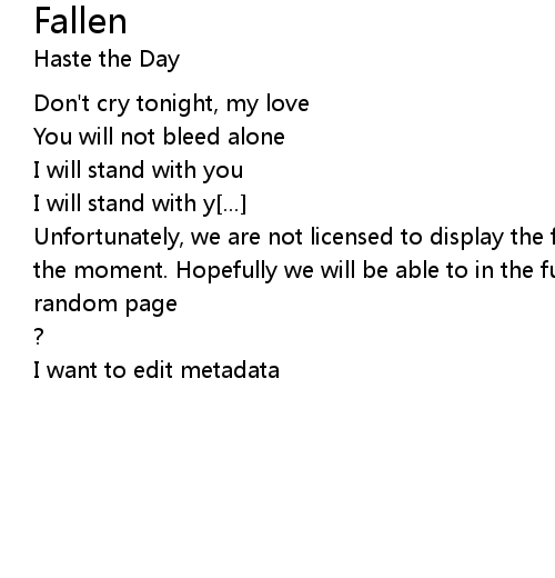 | Unfortunately, we are not licensed to display the full lyrics for this song at the moment. Hopefully we will be able to in the future. Until then, how about a | |