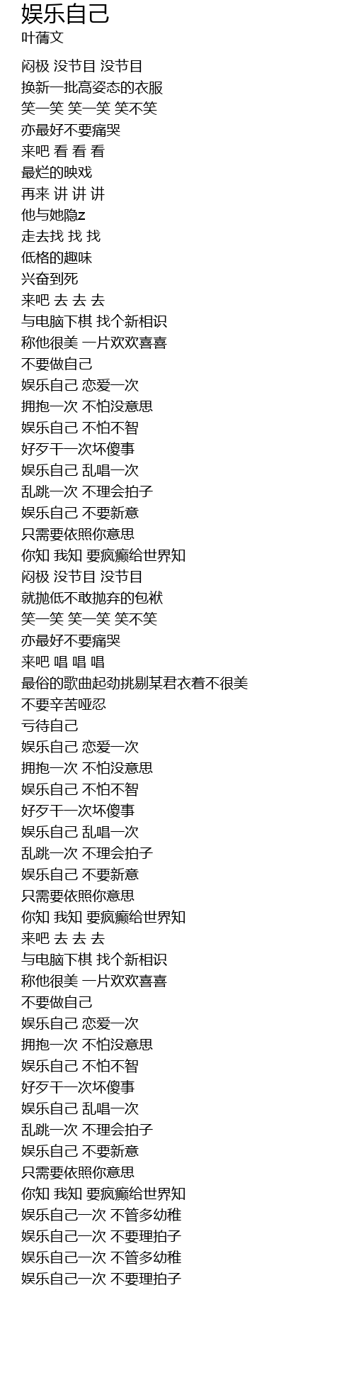 | [03:23.34] | 娱乐自己 恋爱一次 |