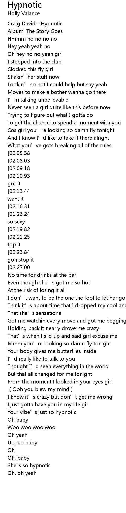 | [01:07.24][02:09.18] | She' s so hypnotic |
