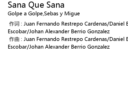 | [00:00.000] | 作曲 : Juan Fernando Restrepo Cardenas/Daniel Esteban Calle Escobar/Johan Alexander Berrio Gonzalez |