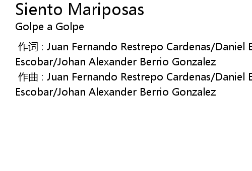 | [00:00.000] | 作曲 : Juan Fernando Restrepo Cardenas/Daniel Esteban Calle Escobar/Johan Alexander Berrio Gonzalez |