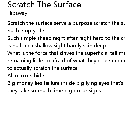 Scratch the surface serve a purpose scratch the surface don't waste my time |