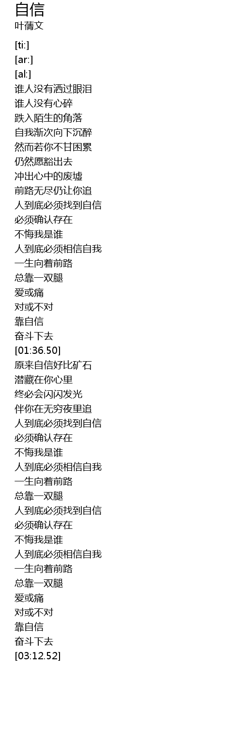 | [02:35.95] | 人到底必须找到自信 |