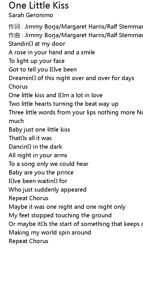 | 作词 : Jimmy Borja/Margaret Harris/Ralf Stemmann | |