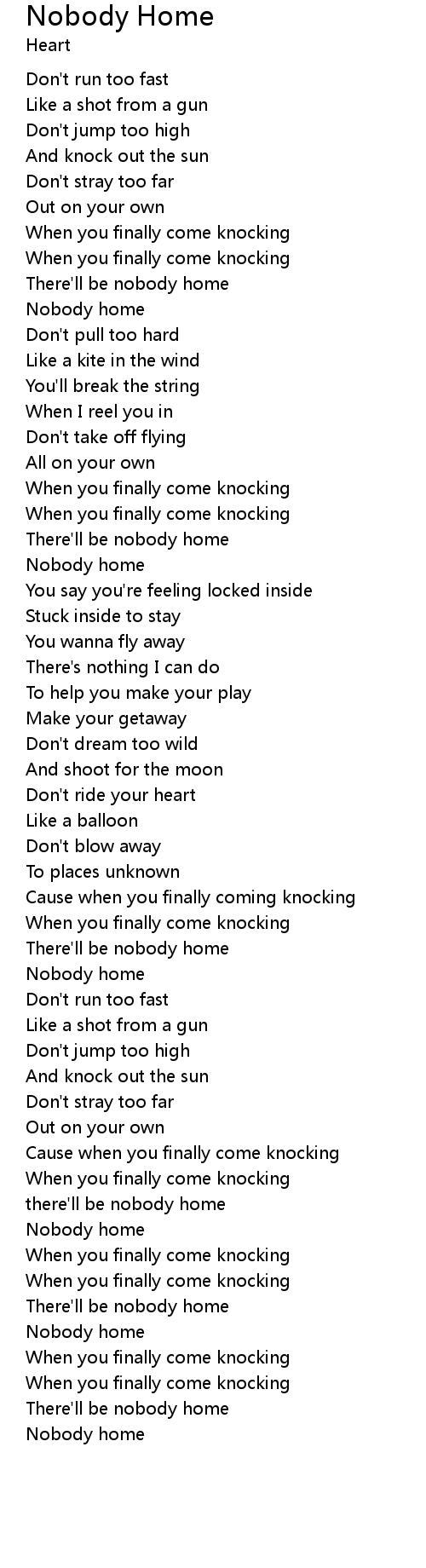 | there'll be nobody home | |
