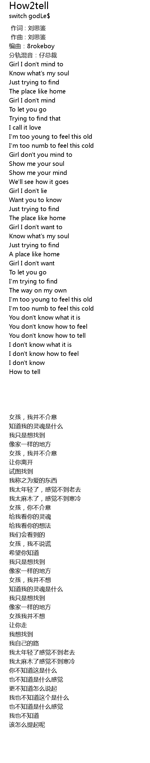 | [00:00.000] | 作词 : 刘思鉴 |