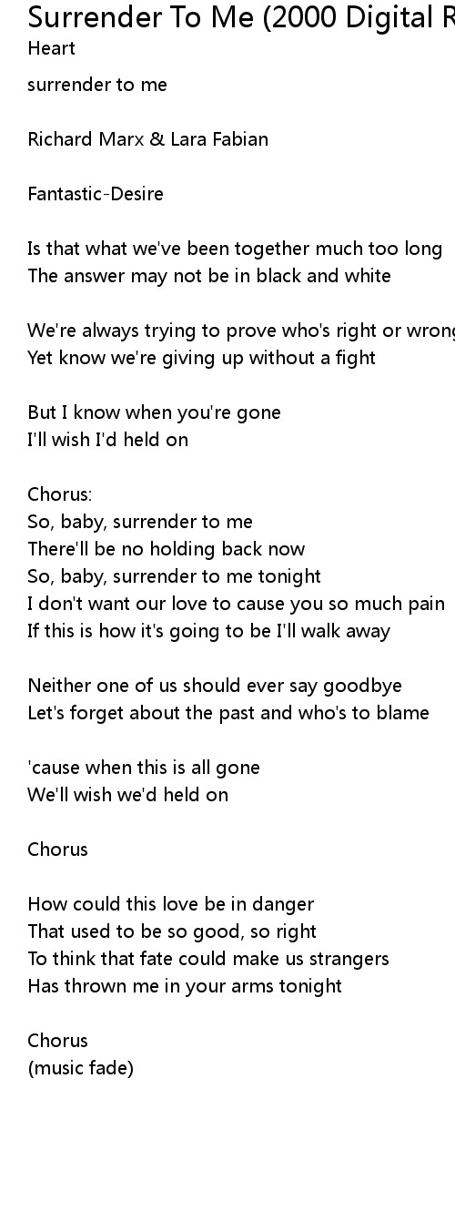 Surrender To Me (2000 Digital Remaster) Lyrics