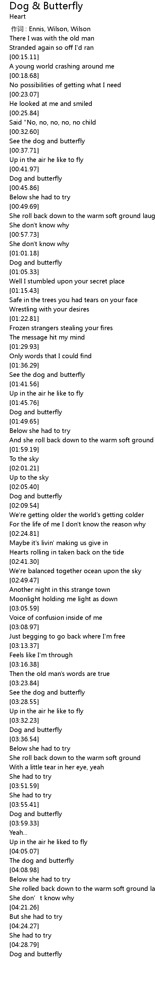 | [04:06.14] | The dog and butterfly |