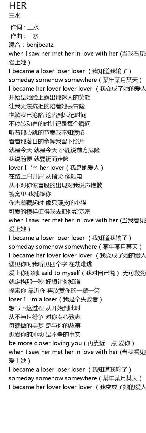| [01:57.956] | I became a loser loser loser (我知道我输了) |
