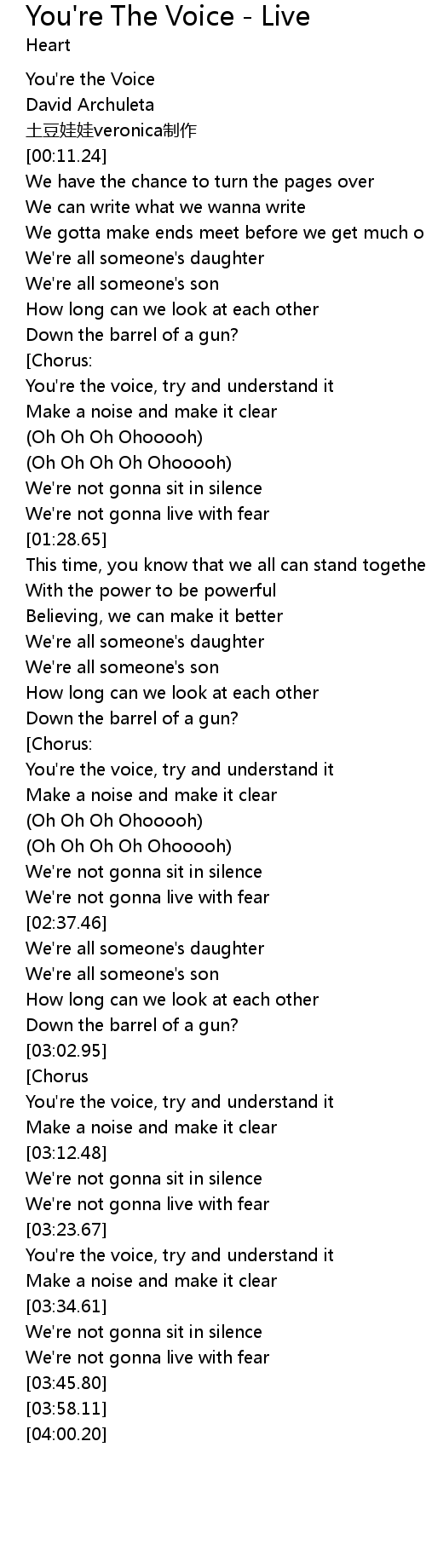 | [00:01.60] | You're the Voice |