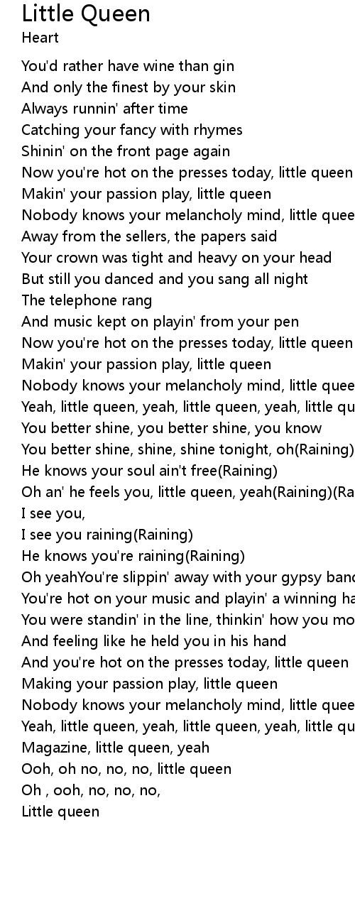 Yeah, little queen, yeah, little queen, yeah, little queen |