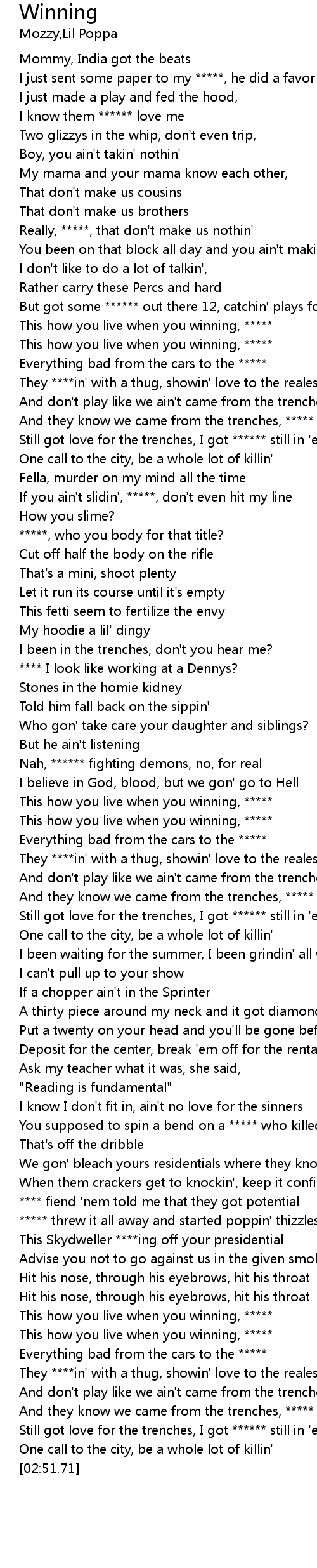 | [02:33.14] | This how you live when you winning, ***** |